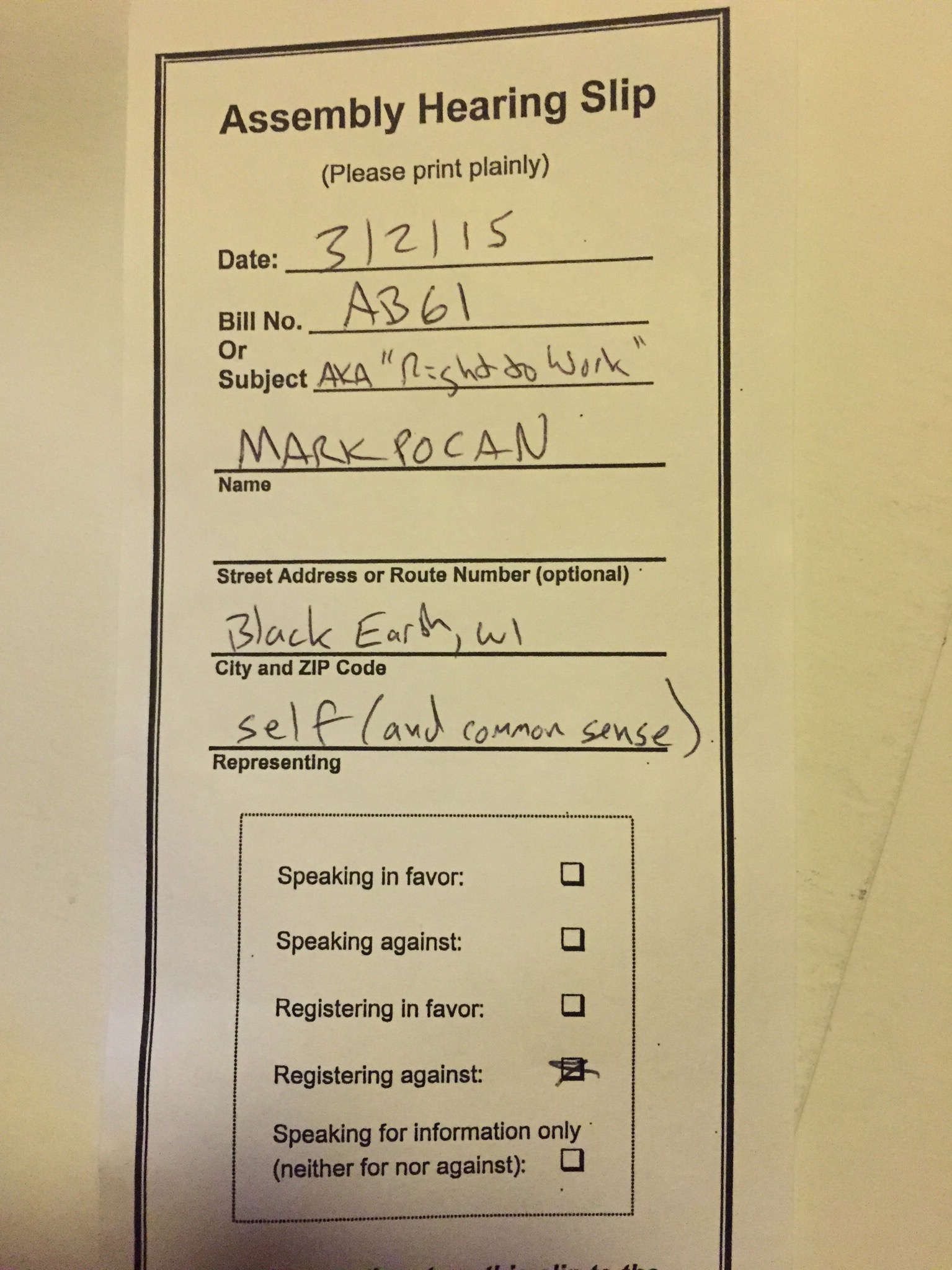 Madison, WI — U.S. Rep. Mark Pocan (WI-02) this morning stood with Wisconsin's working families and registered his opposition to the damaging so-called Right-to-Work law in the State Assembly.